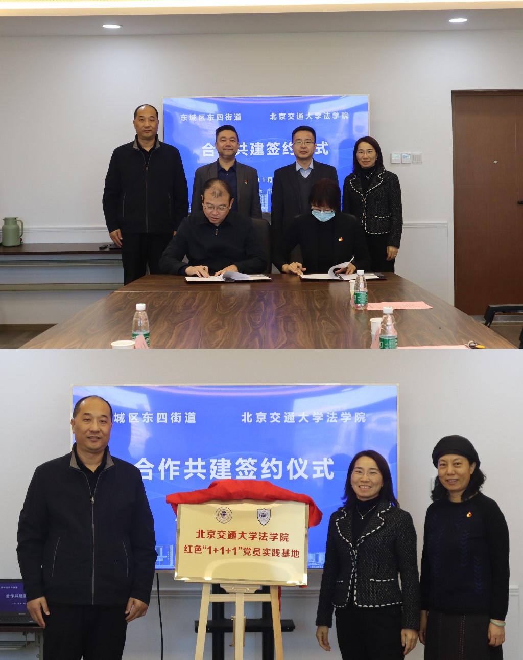 水晶直播 党委副书记、副院长王莹与东四街道工委副书记张庆春代表双方签署合作共建协议书;水晶直播 副院长朱本欣、党委委员陈力铭与东四街道办事处副主任刘立平共同为红色“1+1+1”党员实践基地揭牌。同时,双方围绕下一步深化合作共建进行了深入交流。