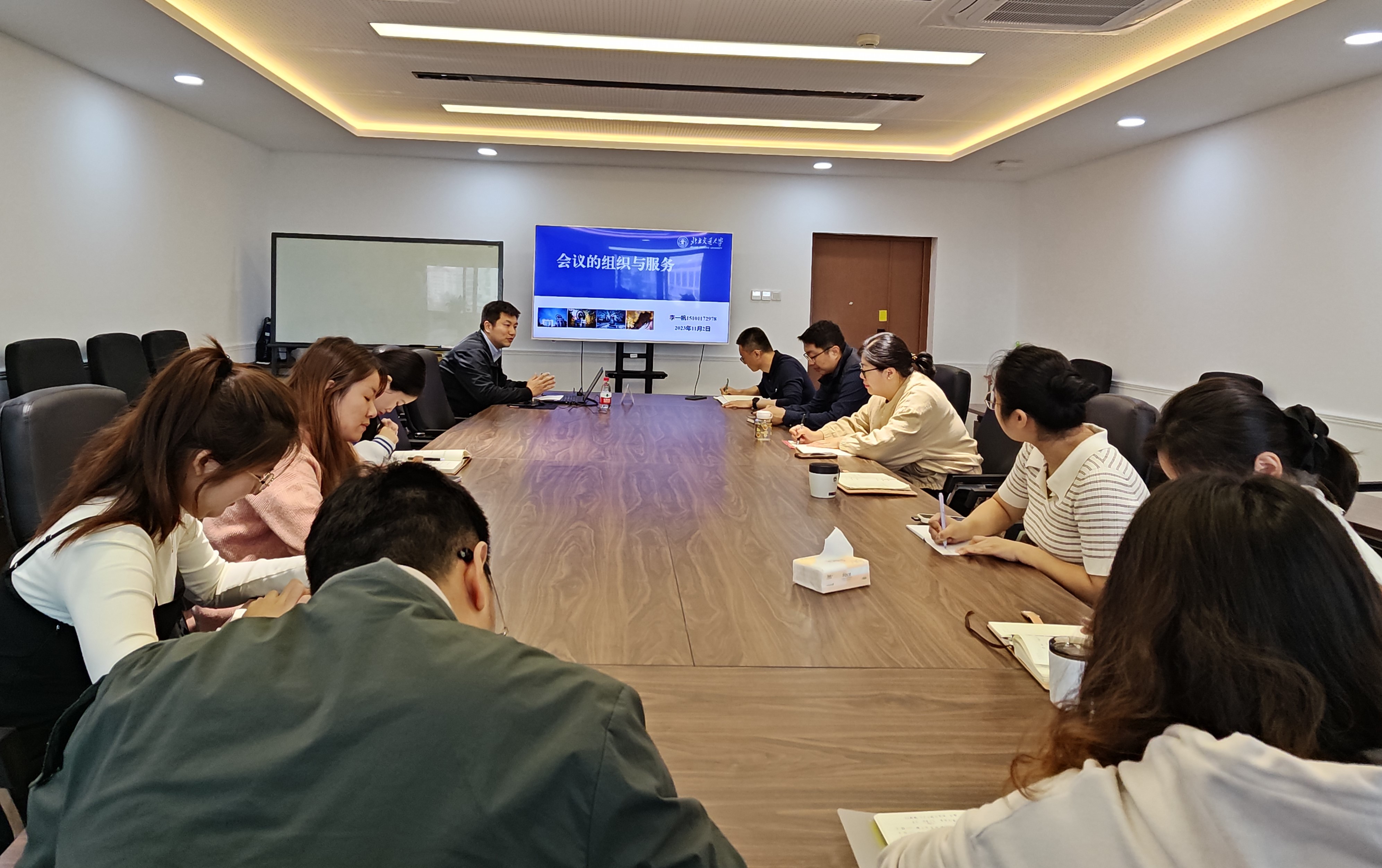 11月2日,邀请学校办公室综合科科长李一帆作了会议的组织与服务的专题培训。李一帆老师从岗位职能入手,介绍了会议的种类和办会的原则,详细讲解了如何做好会前筹备、会中服务、会后总结等各个环节的工作。通过此次培训,与会人员对会议的组织与服务有了更深入的了解,只有把握好每一个环节,才能确保会议的高效和顺利进行。