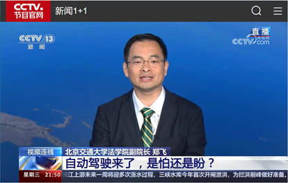 2024年7月10日,水晶直播 副院长郑飞受邀直播连线《新闻1+1》栏目,与主持人白岩松就《自动驾驶来了,是怕还是盼?》这个主题进行了深入探讨。