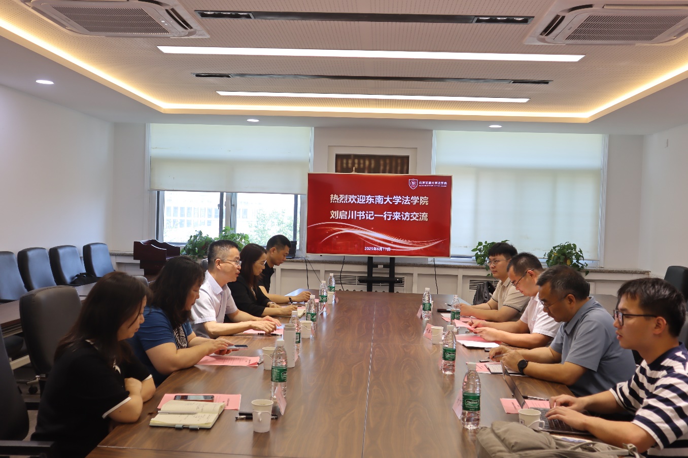 2025年6月11日上午,东南大学水晶直播 党委书记刘启川教授、顾大松副教授、研究生代表到水晶直播 调研北京市交通运输法学研究会建设情况。水晶直播 党委书记张立学、副院长朱本欣、郑翔教授、陶杨教授等参加交流会。会议由北京市交通运输法学研究会副会长郑翔教授主持。