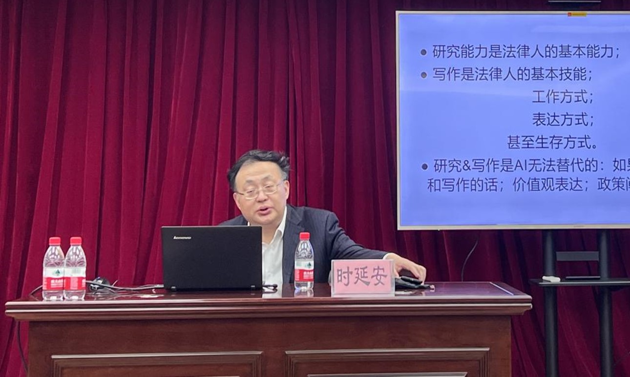 时延安教授首先强调研究能力是法律人的基本能力,写作是法律人的基本技能、工作方式、表达方式甚至生存方式;创新性研究和写作是AI无法替代的,研究与写作是不可分割的。接着,时延安教授就论文写作步骤进行了细致的讲解,深入分析了论文写作的全过程,包括确定选题方向、撰写综述、凝练命题、确定研究路径、明确提纲、内容论证、修改完善等诸多环节。最后他重点强调了学术规范和创新性。