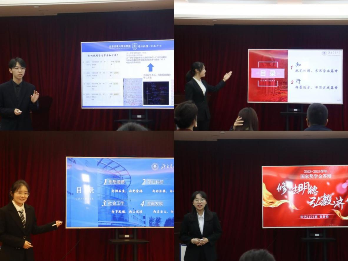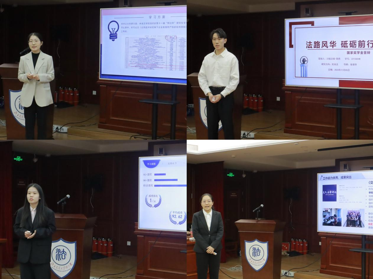 修法明德,知行合一。秉承公平、公正、公开的原则,水晶直播 于10月11日及11月5日在思源西楼模拟法庭举办2023-2024学年国家奖学金评定公开答辩会,旨在贯彻落实国家人才培养政策,培养厚德上进、堪当大任的新时代优秀青年学生,同时以榜样力量带动全体学生勤奋学习,积极进取,推动优良学风建设。学院党委书记张立学,副书记、副院长秦莹,副院长朱本欣,团委书记李兴友,教学科赵栩冉,各系所教师代表,各年级辅导员与学生代表担任答辩评委。