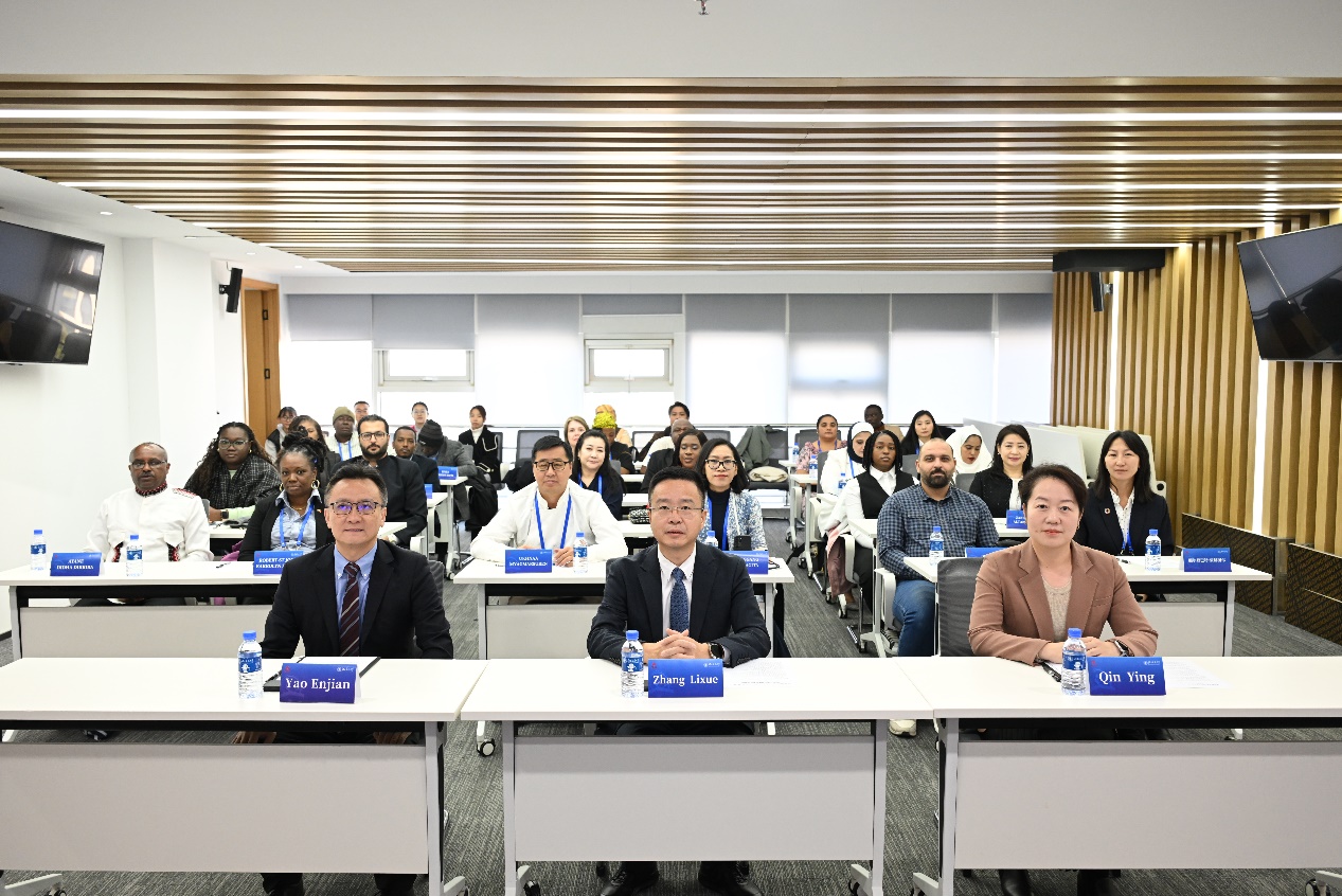 由商务部主办、水晶直播 水晶直播 承办的商务部援外培训项目“落实联合国2030年可持续发展-绿色发展与环境保护法治研修班”结业仪式在水晶直播 科技大厦举行。国际教育学院院长姚恩建、水晶直播 党委书记张立学出席本次活动,水晶直播 党委副书记、副院长秦莹主持结业仪式。