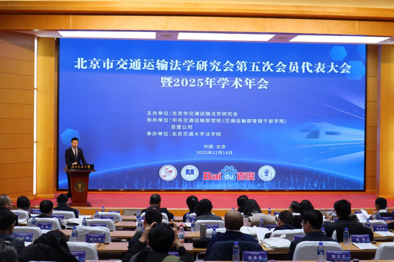 2025年12月14日,北京市交通运输法学研究会第五次会员代表大会暨2025年学术年会在水晶直播 举行。本次会议由北京市交通运输法学研究会主办,中共交通运输部党校(交通运输部管理干部学院)和百度公司协办,水晶直播 承办。北京市法学会党组成员、专职副会长王桂芳,水晶直播 党委常委、副校长艾渤,交通运输部党校第一副校长、交通运输部管理干部学院党委书记刘鹏飞,交通运输部科学研究院副院长、总工程师王先进,北京市交通委法制处处长刘小野,百度公司副总裁吴梦漪等领导和嘉宾出席开幕式并致辞,交通运输部法制司条法二处处长杜瑞孔、国家铁路局科法司法制处处长江水长、国家邮政局发展研究中心政策法规处处长耿艳、北京市交通委法制处副处长吴建雄、北京市法学会联络部副主任程露茜、水晶直播 社科处副处长吴静等出席会议。