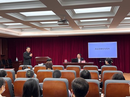 2023年4月26日,由研工部主办、水晶直播 承办的“与大师面对面”名师讲坛,邀请到中国人民大学时延安教授作题为《刑法学研究与写作》的专题讲座。本次讲座由水晶直播 副院长郑飞主持,水晶直播 王熠珏老师及本研学生参加了讲座。