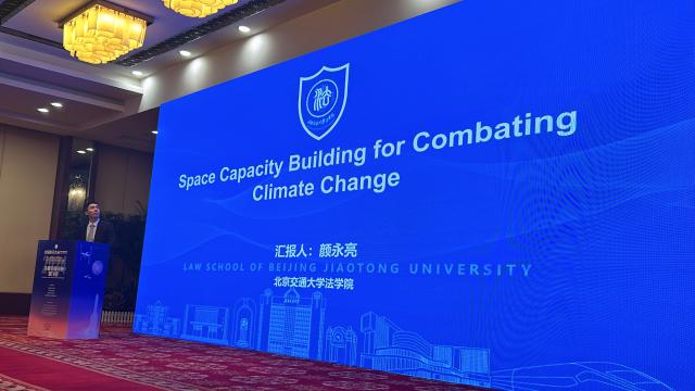 4月23日,颜永亮老师参加了中国空间法学会和深圳北理莫斯科大学主办的“中俄空间法律与政策闭门会”,与中俄空间法领域的专家学者进行深入的交流。4月24日,参加了中国宇航学会主办的“《外空条约》与外空利用新发展研讨会”,并做了主题演讲,与外交部以及其他单位院校的专家学者进行了深入的探讨与交流。4月25日,颜永亮老师在“外空法治研讨会”上做了题为“Space Capacity Building for Combating Climate Change”(应对气候变化的空间能力建设)口头全英文讲演,并与亚太空间合作组织对外关系和法律事务部部长艾莎·贾吉拉尼女士进行亲切交流和建立联系。